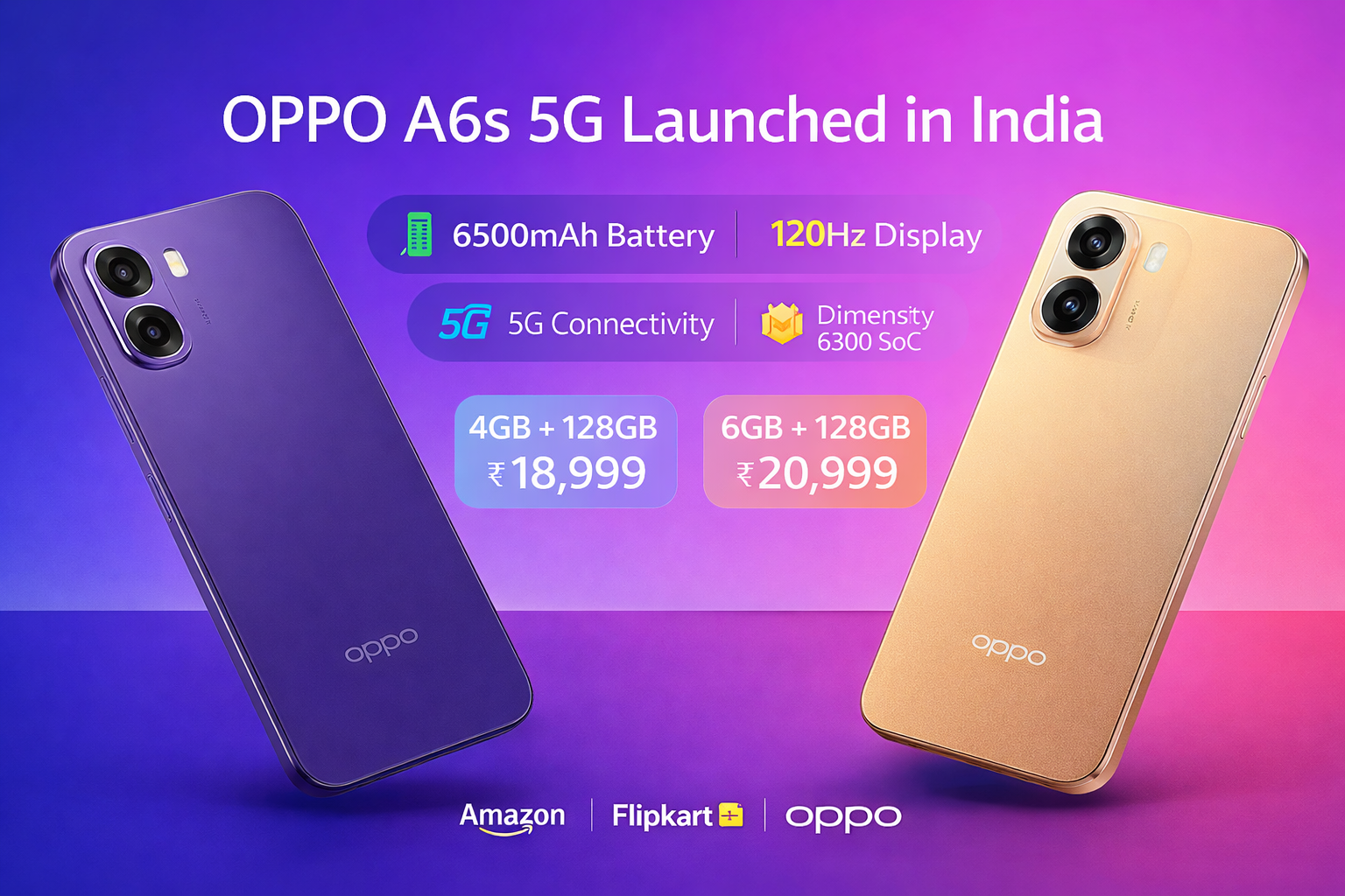 OPPO A6s 5G Launched in India: OPPO A6s 5Gp has officially launched in India with a powerful 6500mAh battery, 120Hz